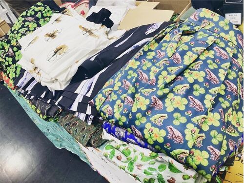 先週末はマメコ商会といっしょに、京都で「いきもにあ」に出展していました。 事前の話では「試着ができないから服はフリーサイズのボトムスやバッグが中心でそんなに量は多くない」という感じだったような気がするが、実際に広げてみるとなかなかの量がある…